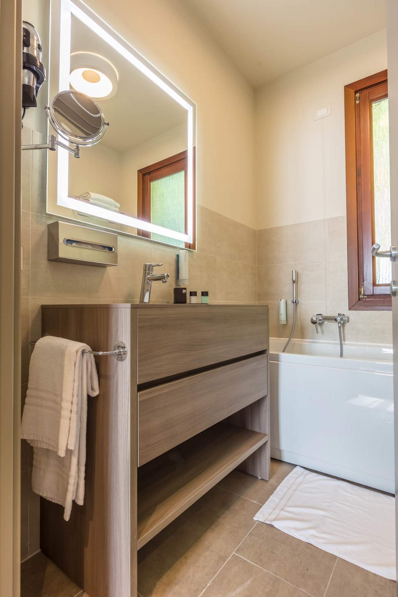 1 x Bad mit Dusche, 1 x Bad mit Badewanne, Föhn, Babywanne (auf Wunsch), Küchenzeile mit Kühlschrank, Mikrowelle, Kochplatte, Geschirr, Free WiFi, 2x SAT-TV, Direktwahltelefon, Klimaanlage, Zimmersafe, Weckdienst, Bügeleisen und Bügelbrett (auf Wunsch), Wäschereidienst, Balkon mit Terrassenmöbel und Seeblick