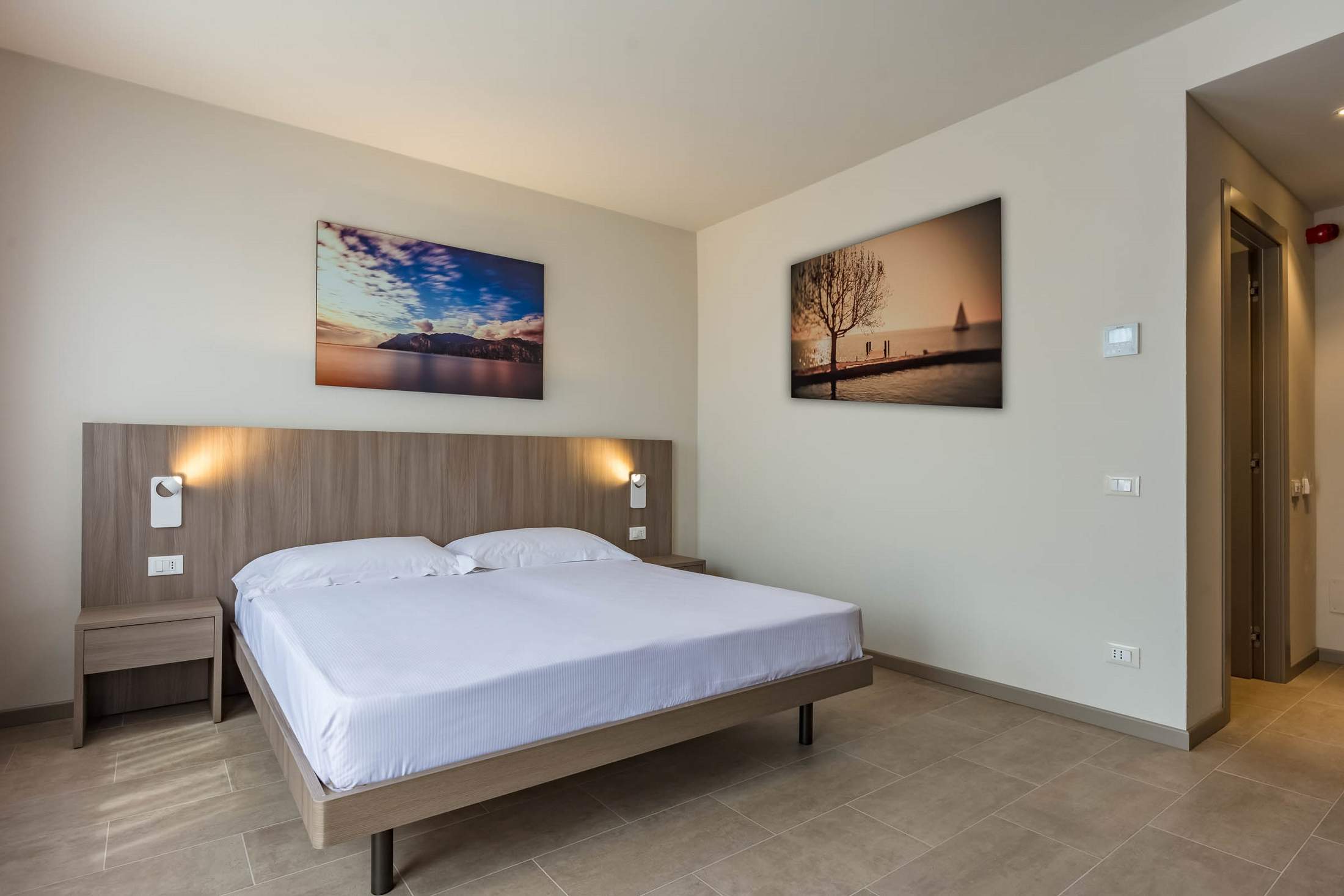 Ampia camera doppia al piano terra con possibilità di letto aggiuntivo, grande solarium e vista sul giardino o sul lago (con sovrapprezzo).
